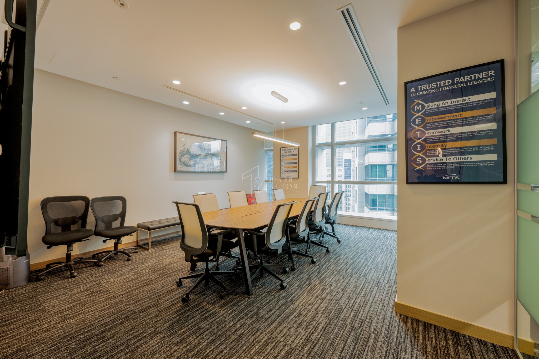 This workspace design perfectly harmonizes efficiency with aesthetics, fostering creativity, collaboration, and comfort for today’s dynamic professionals.